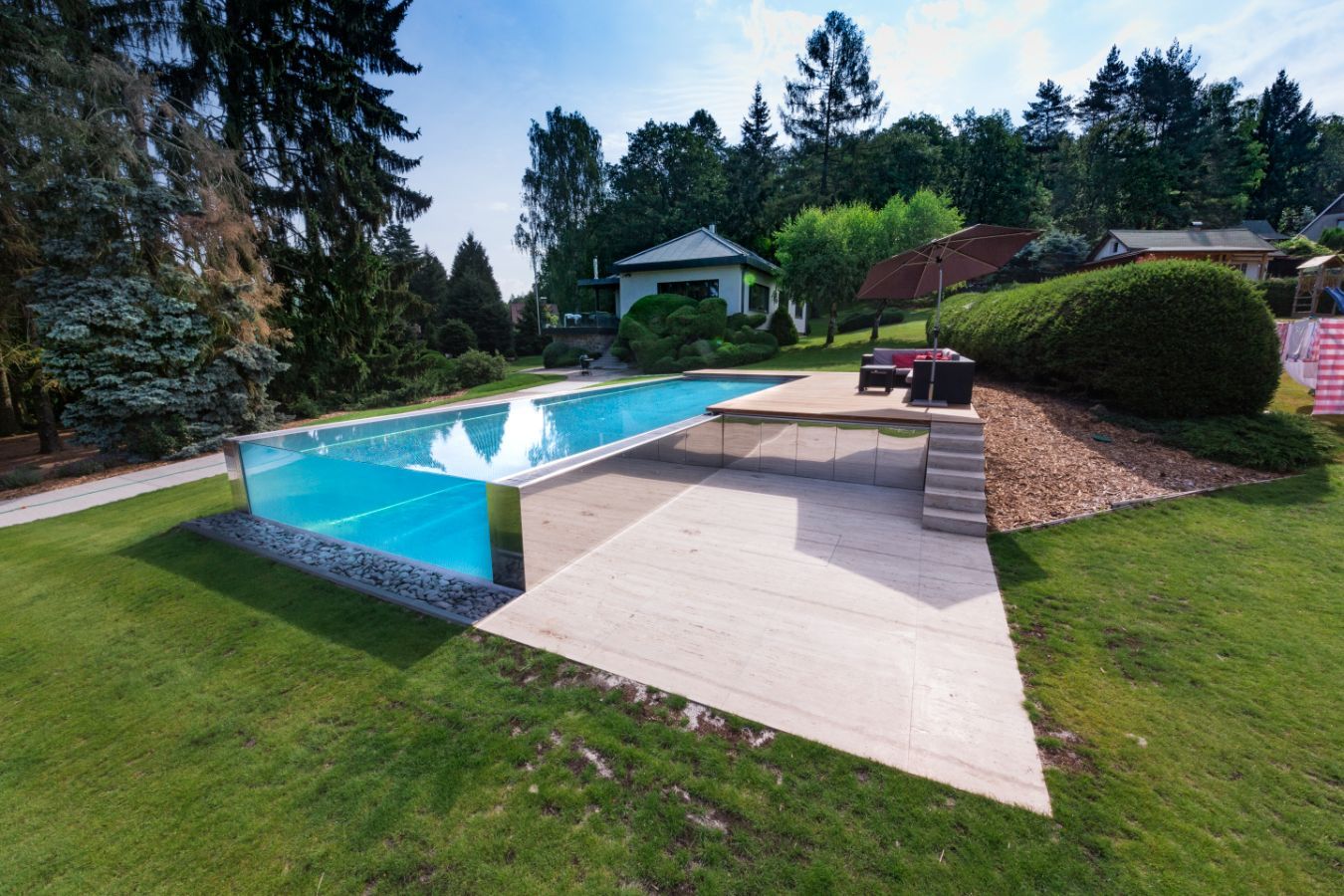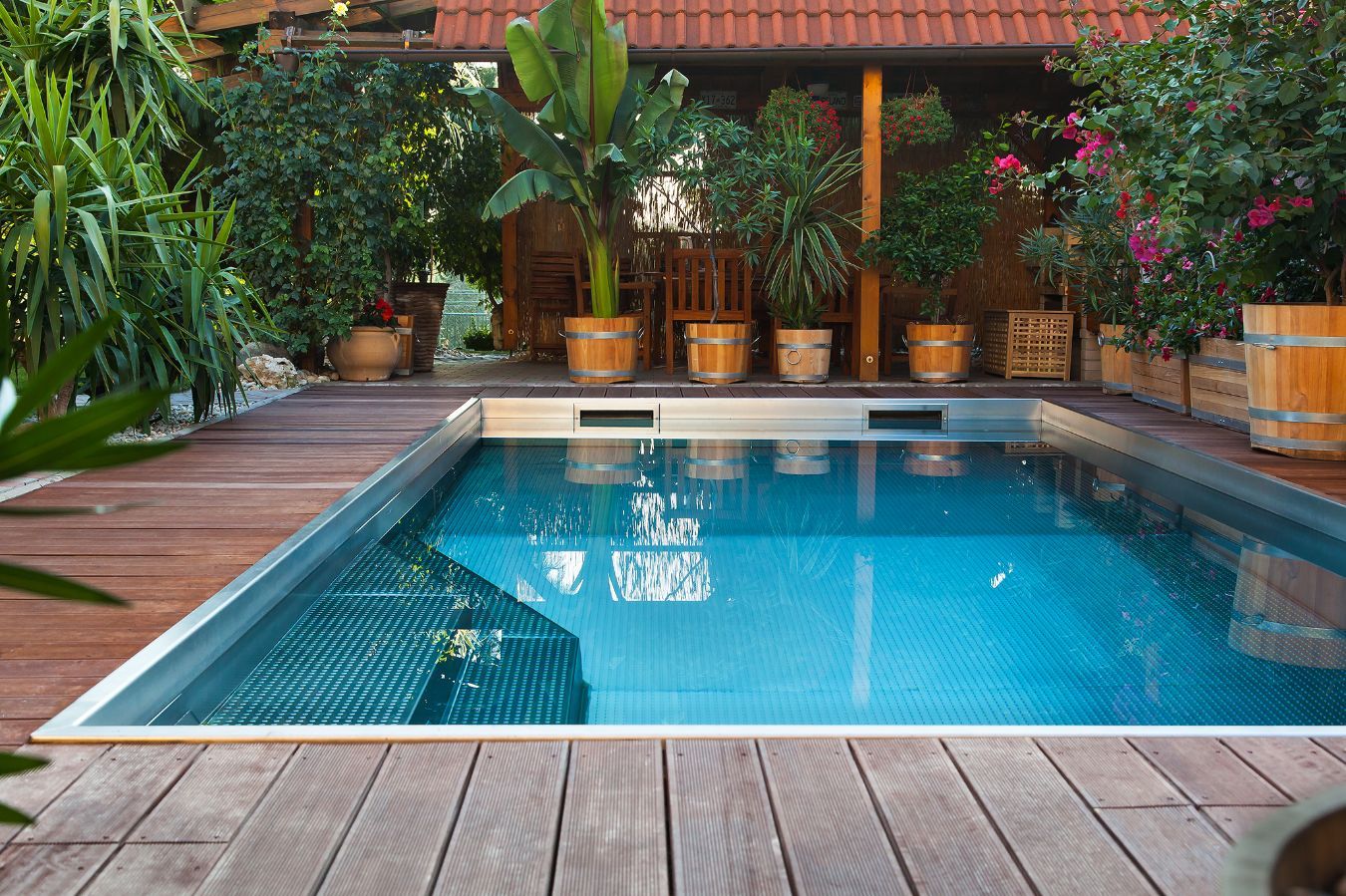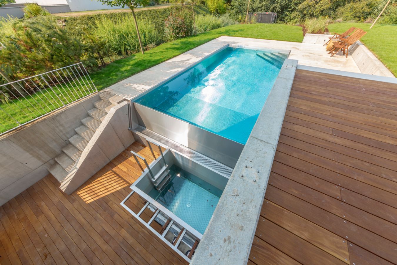 Nerezový bazén se vyznačuje nejen všeobecně uznávanou odolností vůči opotřebení, ale také vzhledem, vždyť luxusní design konstrukce nejde přehlédnout.