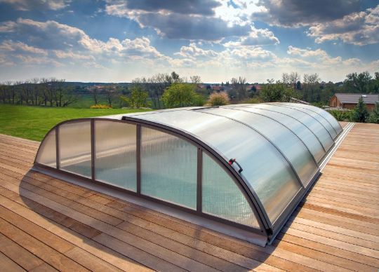 Vysoké posuvné zastřešení bazénu má prostor uvnitř pavilonu pro volný pohyb a relaxaci a nízká zastřešení ochrání Váš bazén před vlivem vnějšího prostředí, aniž by přitahovaly příliš mnoho pozornosti.